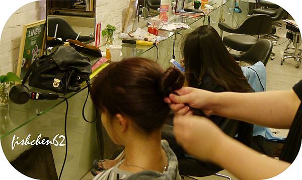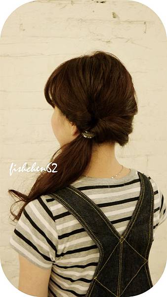 小佩還簡單教我,將頭髮繞到側邊綁一個低馬尾